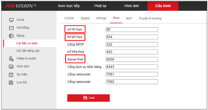 - Cấu hình -> Mạng -> Cài đặt cơ bản -> Port