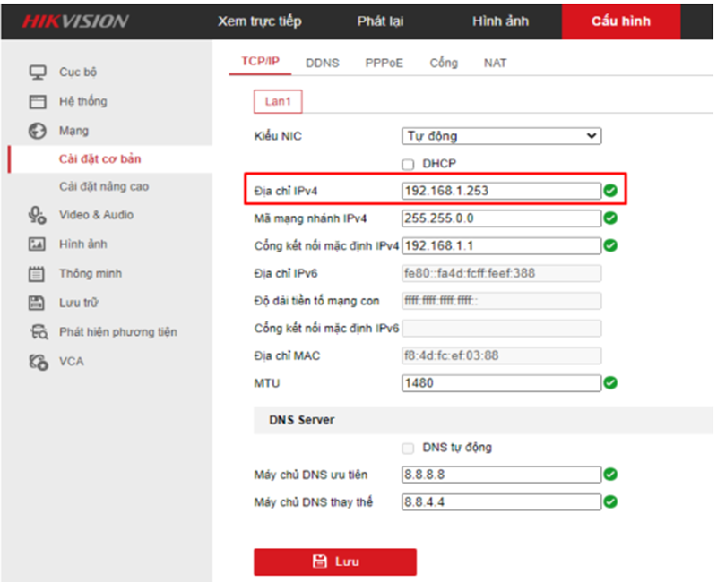 - Cấu hình -> Mạng -> Cài đặt cơ bản -> TCP/IP