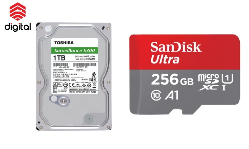 Đây là yếu tố dễ nhận biết nhất. Dung lượng càng lớn, thời gian lưu trữ càng dài. Các thiết bị lưu trữ phổ biến hiện nay là thẻ nhớ MicroSD (dành cho camera Wi-Fi độc lập) và ổ cứng HDD (dành cho hệ thống camera có đầu ghi DVR/NVR).