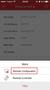 - Sau khi chọn biểu tượng dấu 3 chấm sẽ hiện ra 2 mục. Remote Configuration và Remote Controller