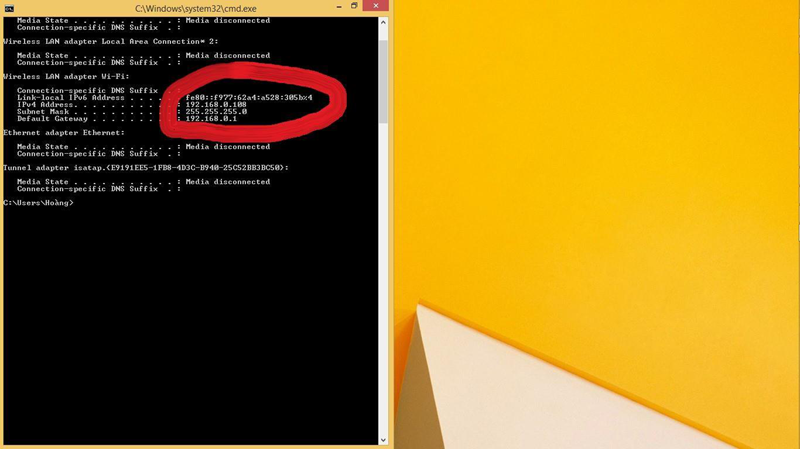Ở màn hình Destop của máy tính: Chọn Start → Nhập “Run” vào ô tìm kiếm → Gõ “cmd” → Nhấn Enter→ Nhập “ipconfig” ở đây sẽ hiển thị thông tin giải địa chỉ IP máy tính của bạn, bạn chỉ cần đặt địa chỉ IP trên máy chấm công cùng dải này là được.