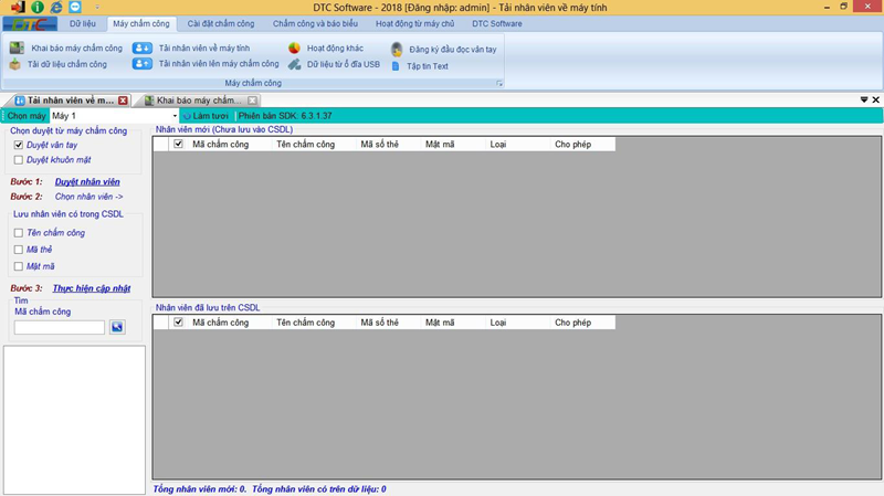 Tải nhân viên lên máy chấm công: Tải tên nhân viên từ phần mềm chấm công lên máy chấm công.