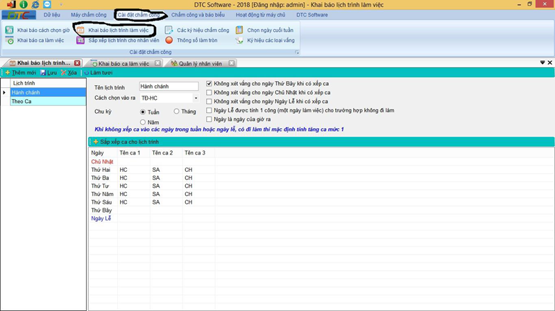 CÁC BƯỚC CÀI ĐẶT CA LÀM VIỆC VÀ GIỜ CHẤM CÔNG