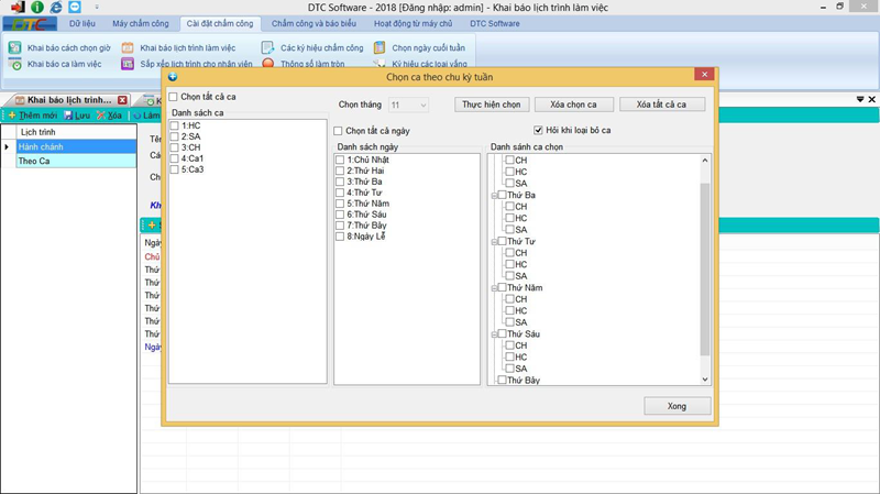• Chọn ca: Ở đây cho phép một người làm việc nhiều ca khác nhau.