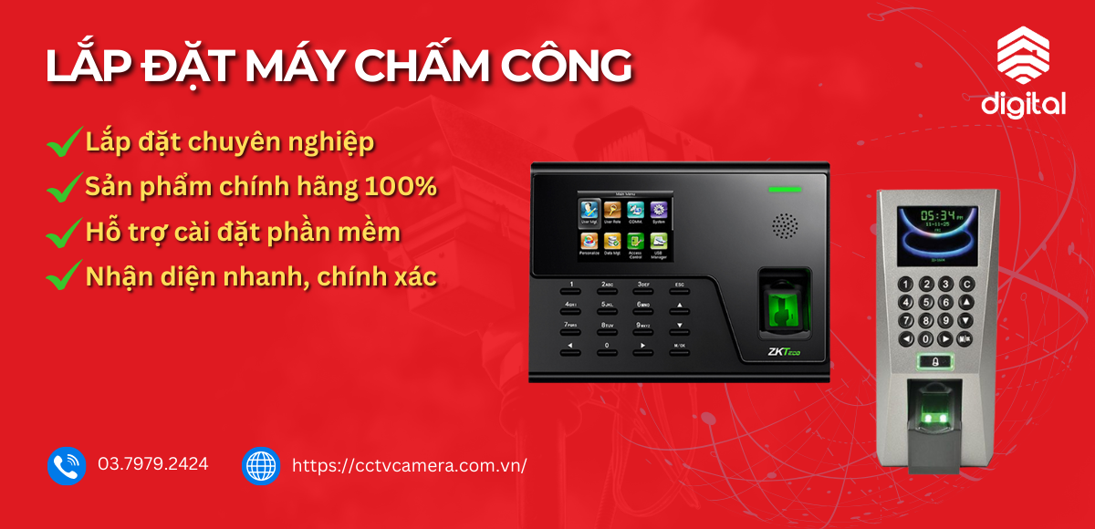 Trong thời đại quản lý nhân sự hiện đại, việc sử dụng máy chấm công đã trở thành giải pháp tối ưu giúp doanh nghiệp tiết kiệm thời gian và tăng tính minh bạch. Với dịch vụ lắp đặt máy chấm công chuyên nghiệp của CCTV Camera, khách hàng sẽ được tư vấn lựa chọn thiết bị phù hợp như máy chấm công vân tay hay nhận diện khuôn mặt, đảm bảo hiệu quả cao và vận hành ổn định.