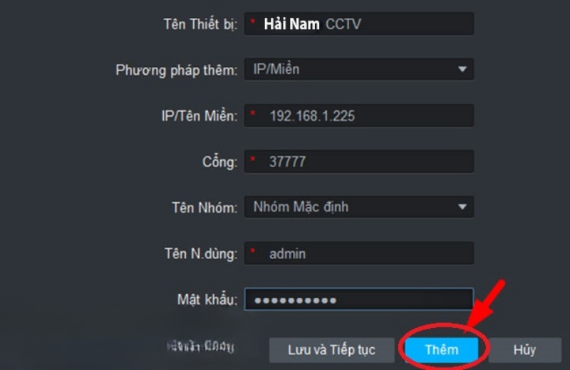 Đây là bước quan trọng để phần mềm có thể kết nối với camera hoặc đầu ghi của bạn.