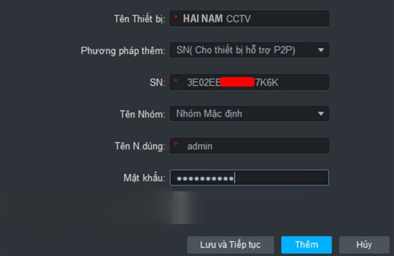 - Password: Mật khẩu của thiết bị (mật khẩu bạn đã đặt cho camera/đầu ghi).